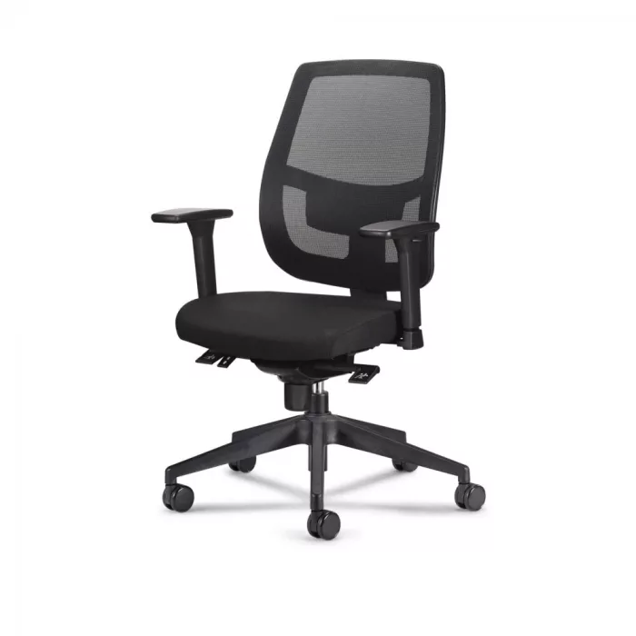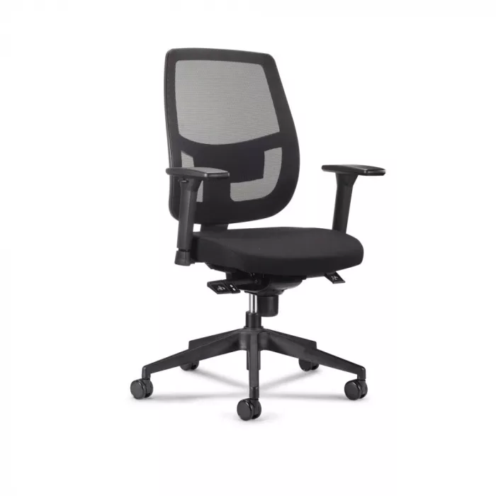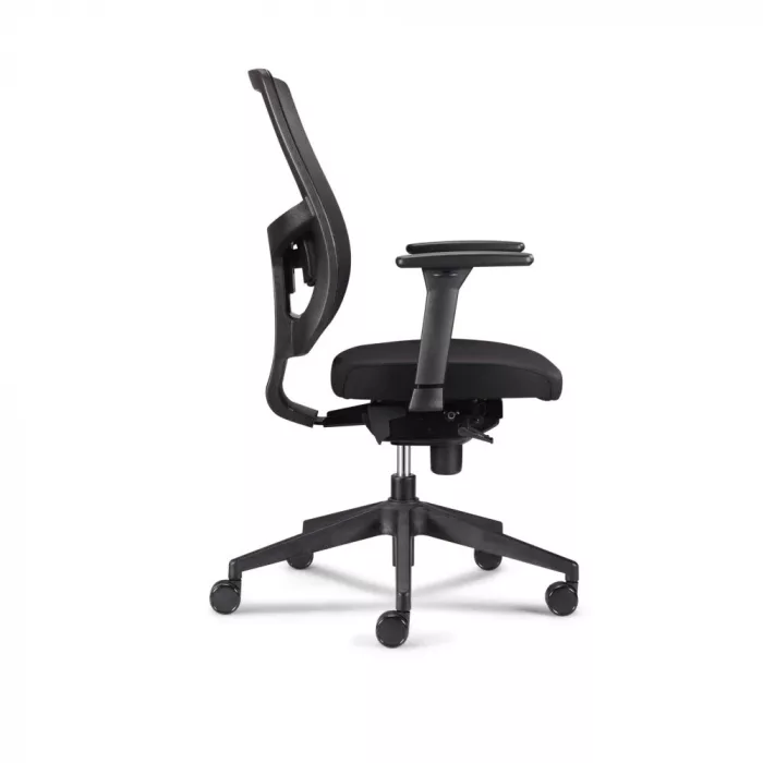 Flow steht für fließenden Komfort und ein modernes Design, das sich nahtlos in jedes Arbeitsumfeld einfügt. Die Kombination aus atmungsaktivem Netzrücken und strapazierfähiger Polsterung schafft ein angenehmes Sitzklima – perfekt für lange Arbeitstage. Alternativ ist der Stuhl auch mit komplett gepolstertem Rücken erhältlich.